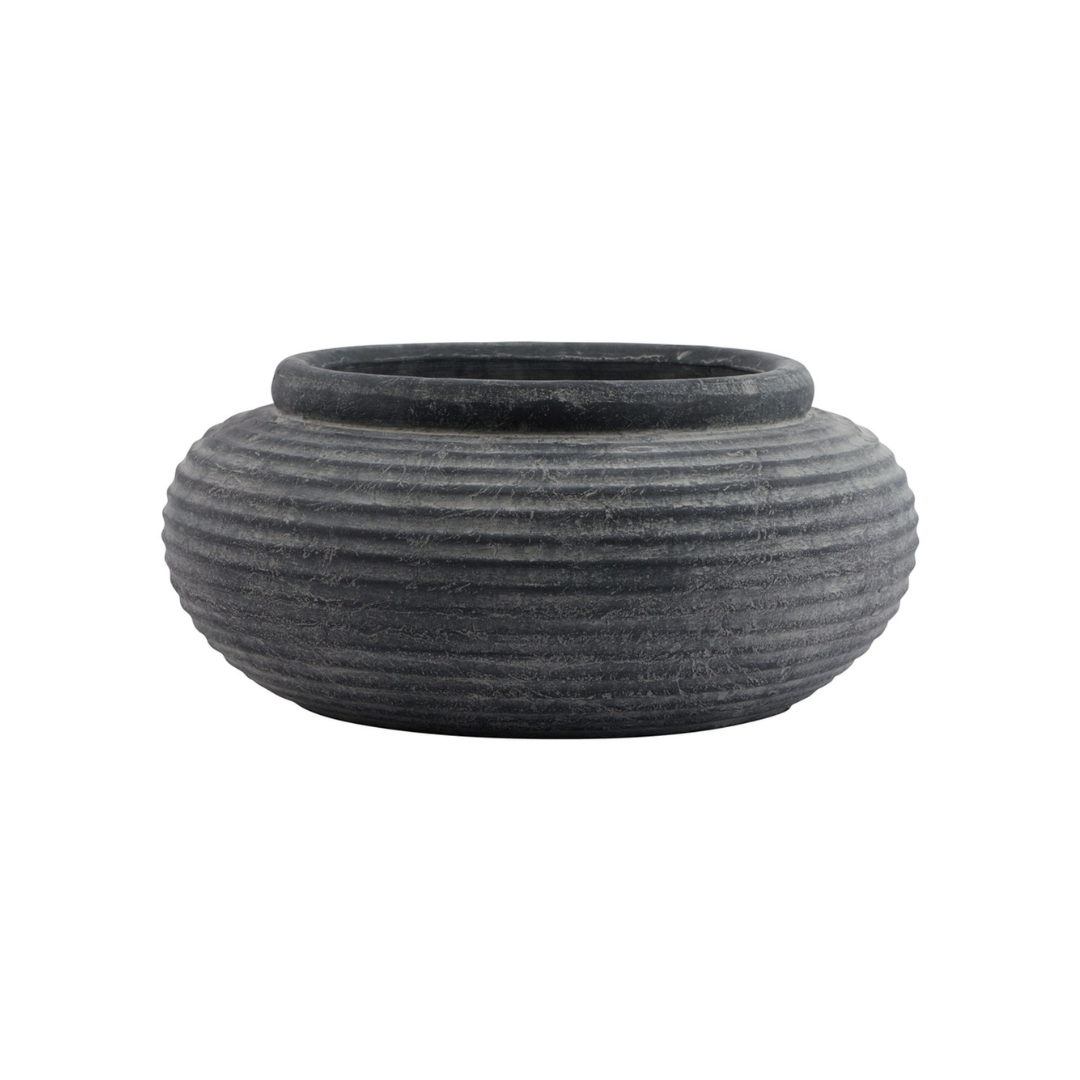 Amalfi Grey Round Ribbed Planter