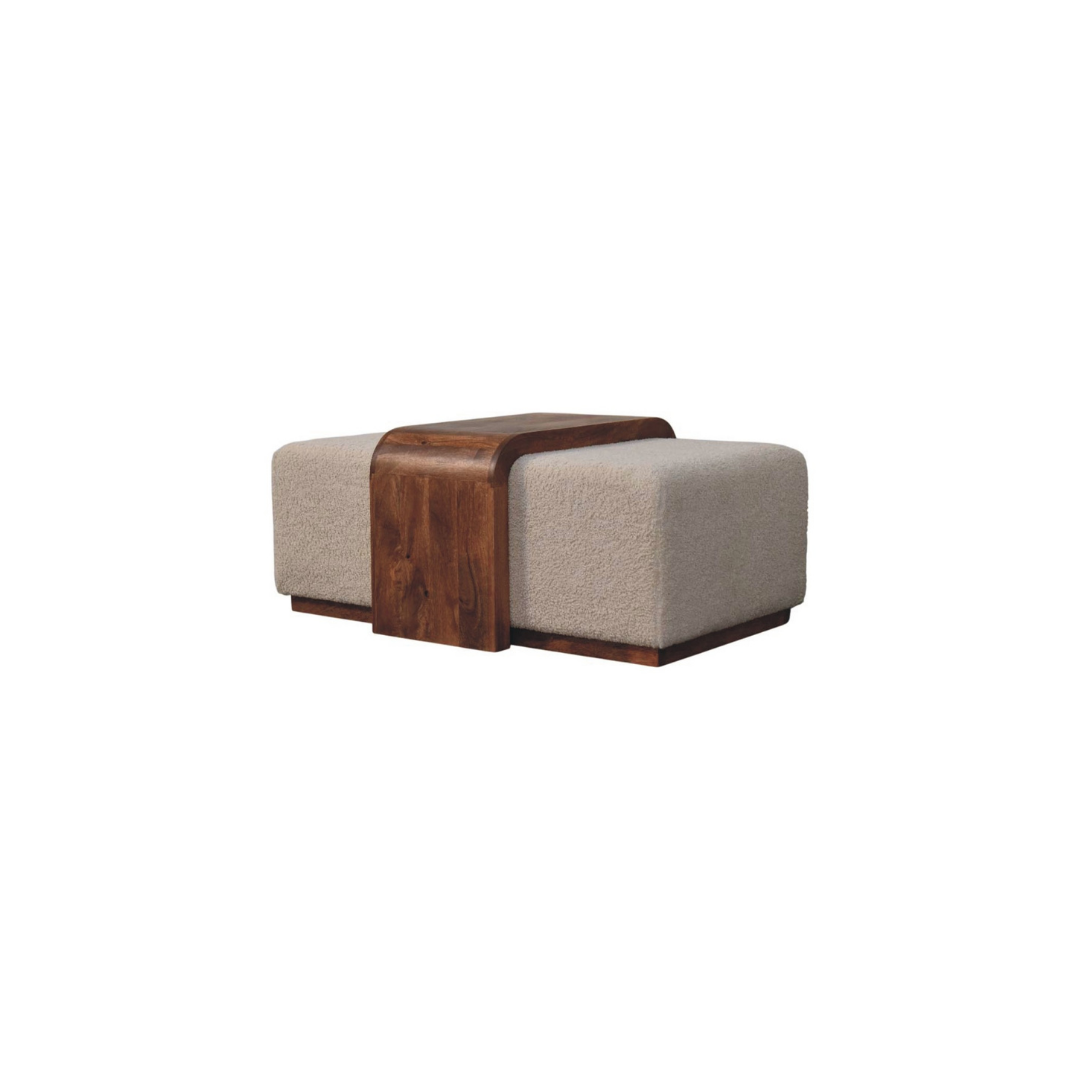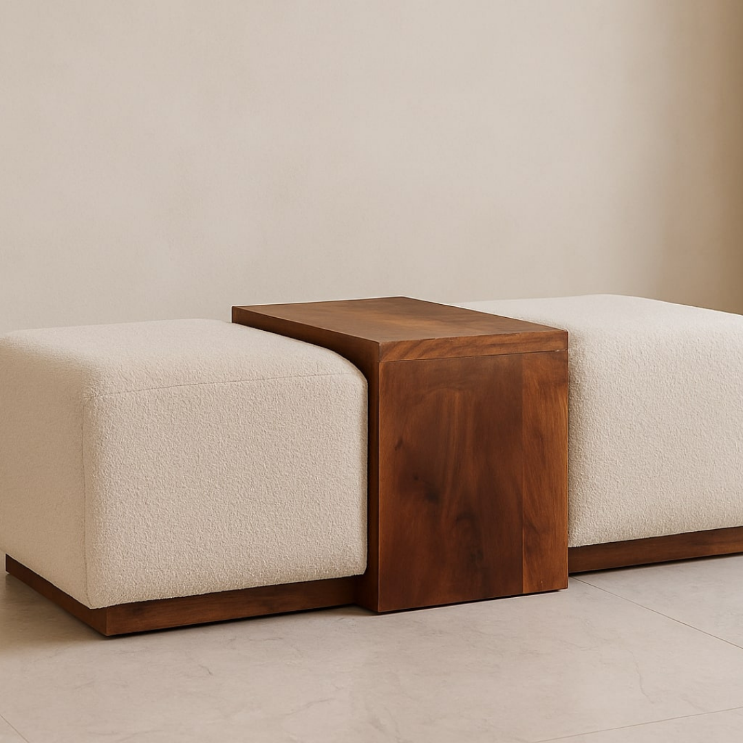 The Arden Bench Duo combines sculptural elegance with inviting comfort in a luxurious Honey Caramel finish. Featuring two plush boucle-upholstered seats flanking a solid mango wood table, its gently curved design offers a perfect spot for wine, books, or décor. Ideal for grand hallways or modern lounges, this piece’s sleek silhouette and warm tones deliver a refined statement that balances form and function with effortless style.