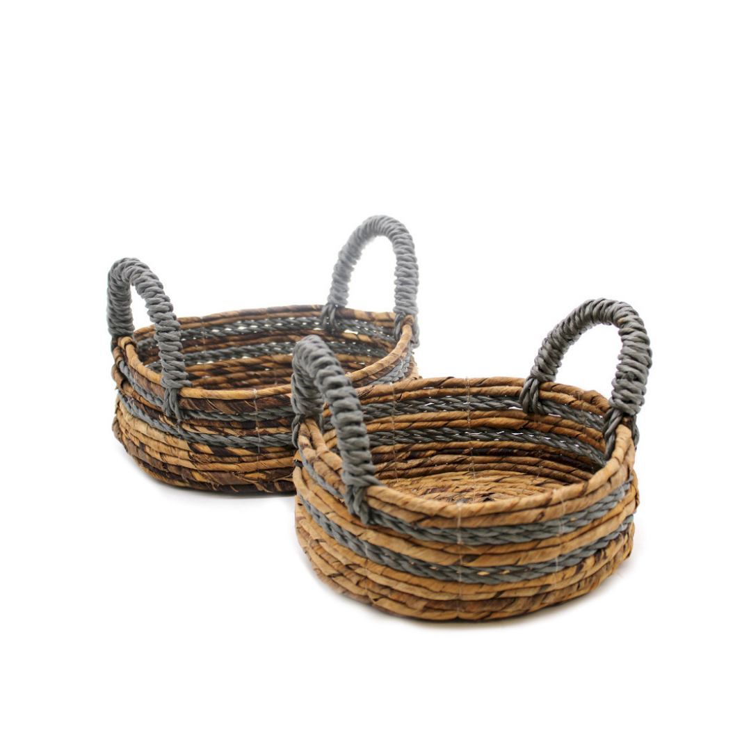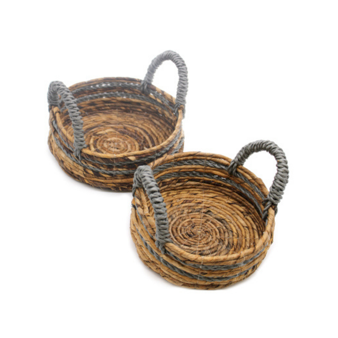 Banana Leaf & Abu-abu Raffia Basket - Set of 2
