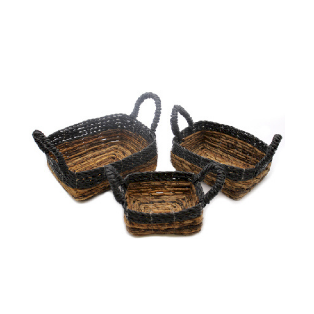 Banana Leaf & Hitam Raffia Square Basket - Set of 3