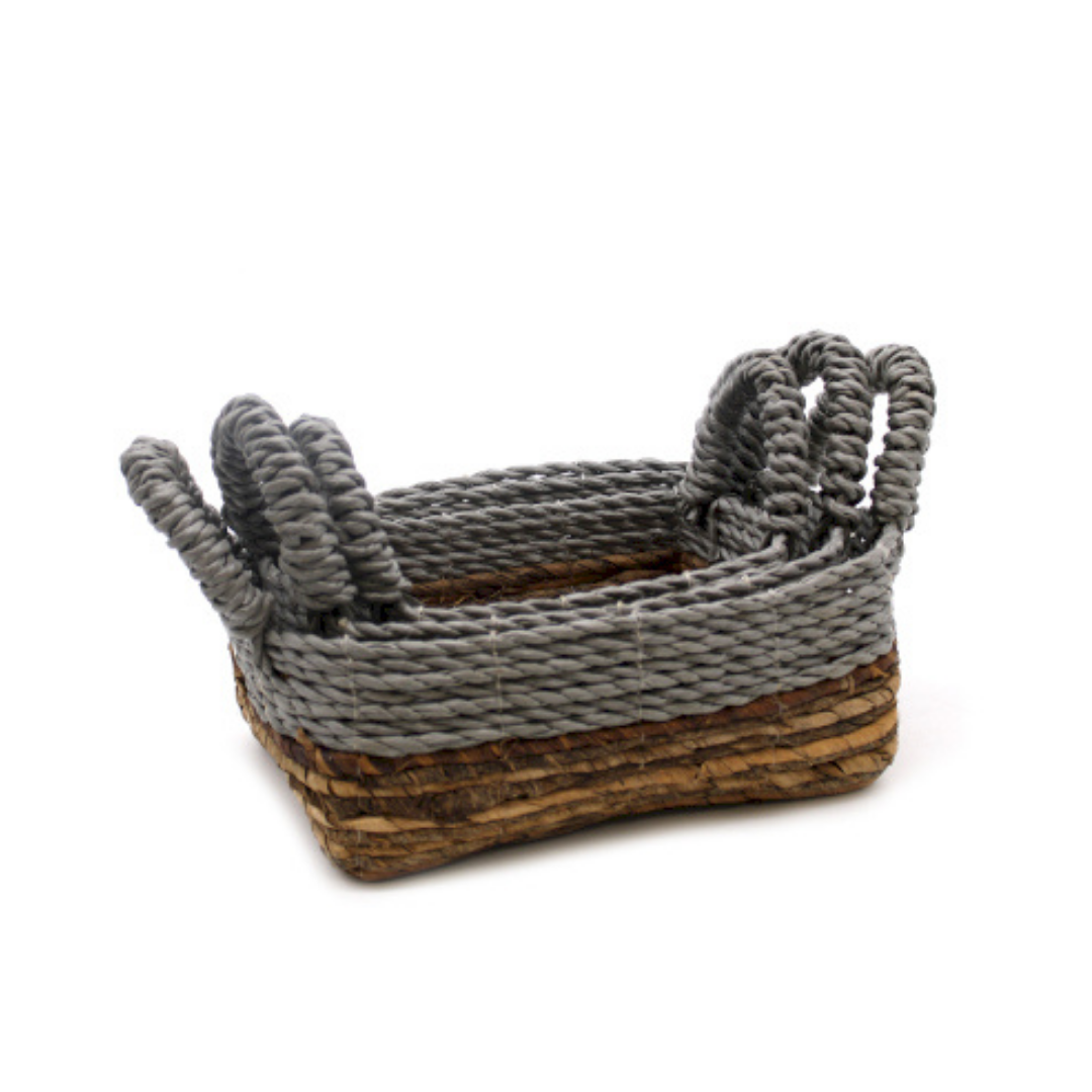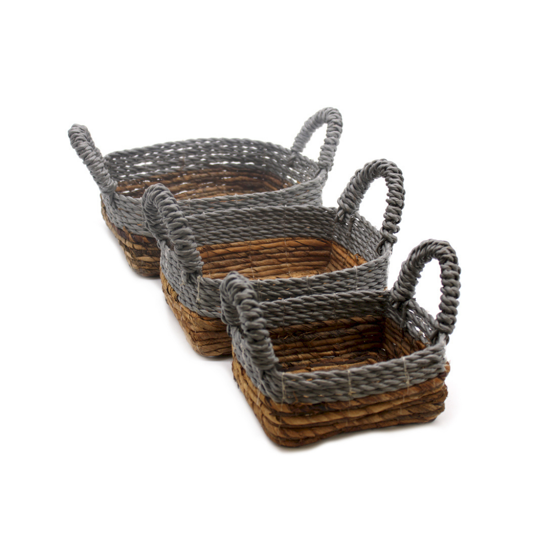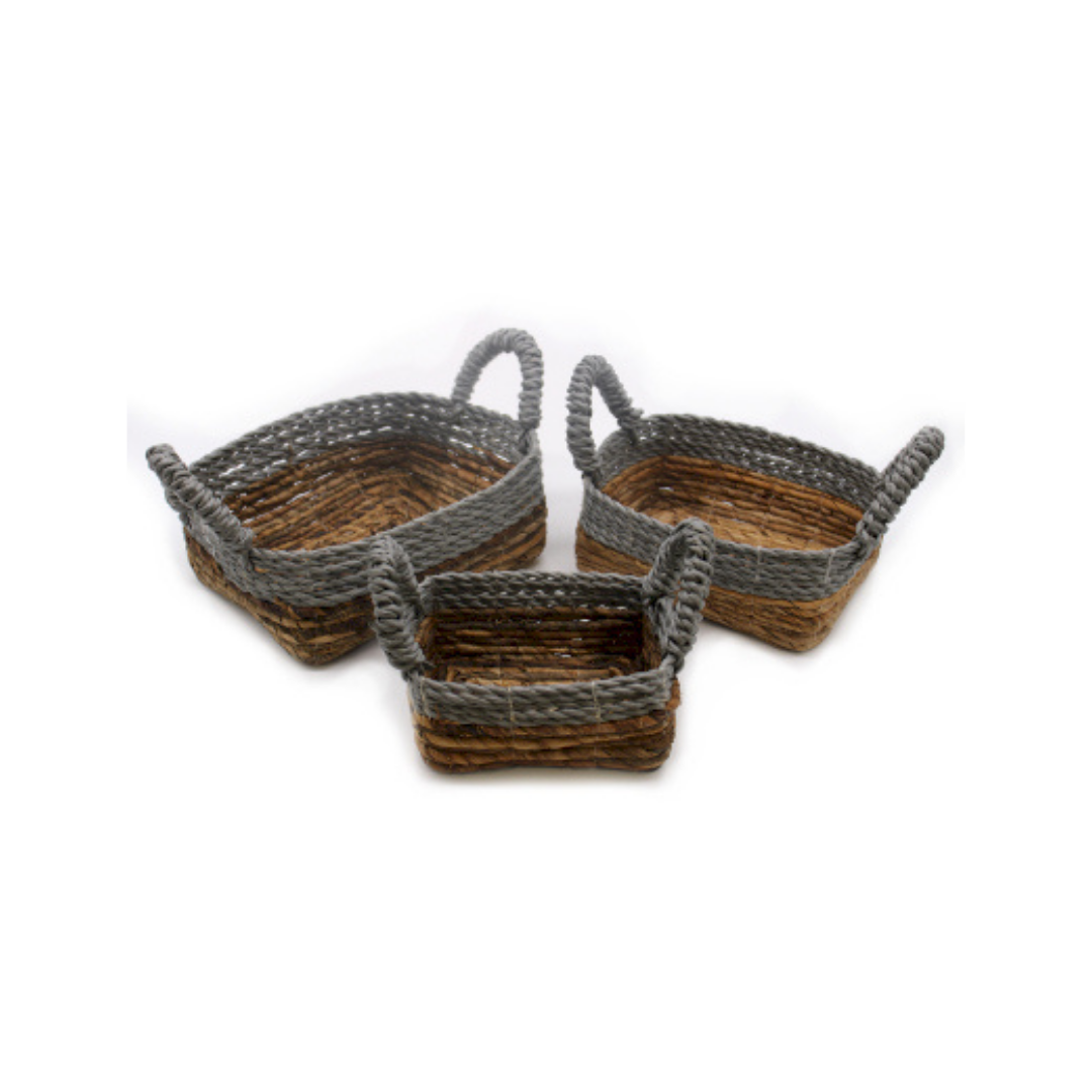 Banana Leaf & Abu-Abu Raffia Square Basket - Set of 3