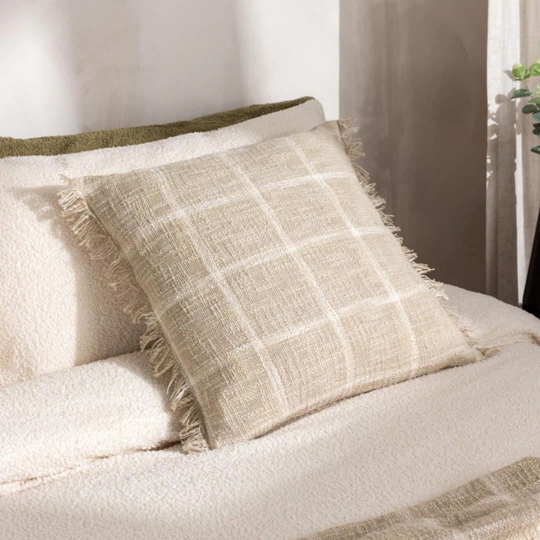 The Stone/Natural Beni Cushion Cover blends natural tones with traditional Beni weaving techniques, offering both aesthetic appeal and durability. Crafted from high-quality materials, this cushion cover adds a textured, artisanal touch to your living space while providing a sturdy and comfortable finish.