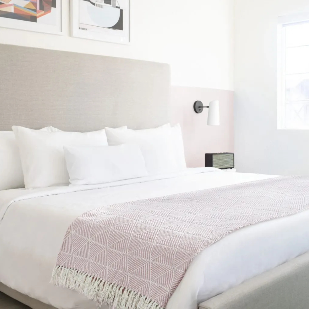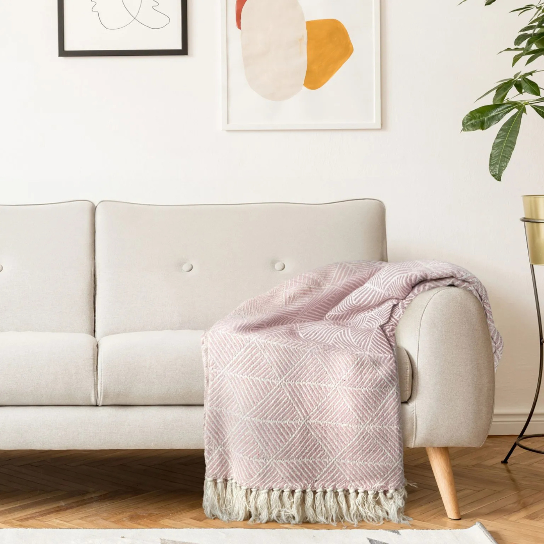 This plush blush pink throw blanket, the Zahra, will add a touch of warmth and style to any room. With its soft fabric and elegant colour, it's the perfect addition to your home decor or for summer days out as a picnic blanket.