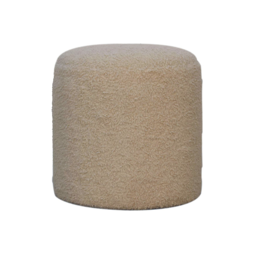 The Boucle Cream Round Footstool features a plush, textured boucle fabric in a versatile cream shade, offering both comfort and style. Its rounded silhouette adds a soft, inviting touch to any room, serving as a functional footrest or an elegant accent piece. Designed to blend effortlessly with diverse interiors, this footstool enhances your space with refined texture and subtle sophistication.