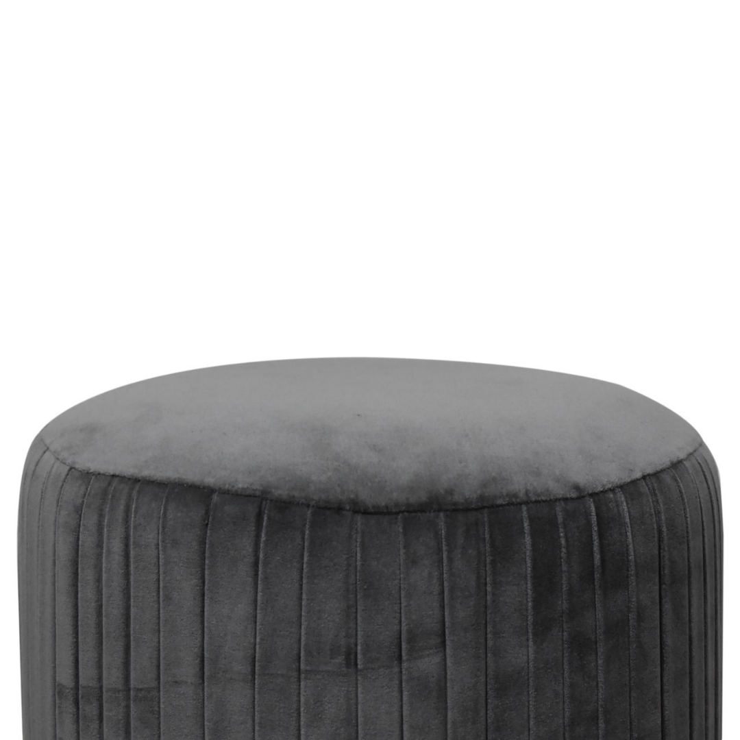 Grey Velvet Pleated Footstool