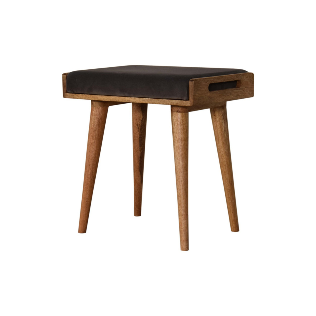 Introducing the Grey Velvet Tray Style Footstool: a versatile and stylish addition to any living space. Crafted with 100% solid wood Nordic-style legs, it features a tray-style design and a luxurious grey cotton velvet top. This comfortable and modern footstool effortlessly blends into any interior, adding a touch of sophistication and a beautiful contrast between wood and fabric.