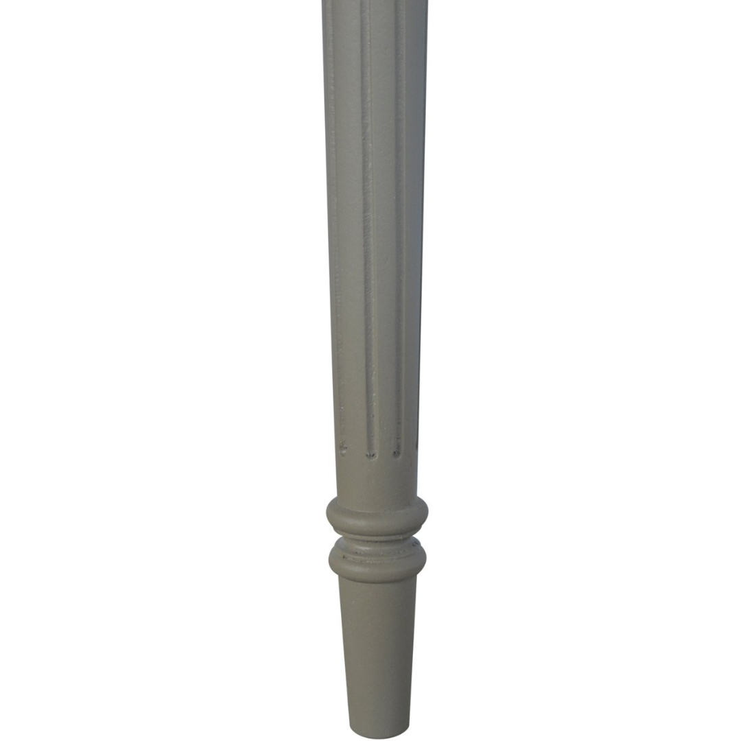 Crafted from 100% solid mango wood, this desk boasts a French grey hand-painted base and a stained oak-ish top. Its hand-carved flute legs and shell handles add a vintage French touch. Perfect for adding style and function to your home.