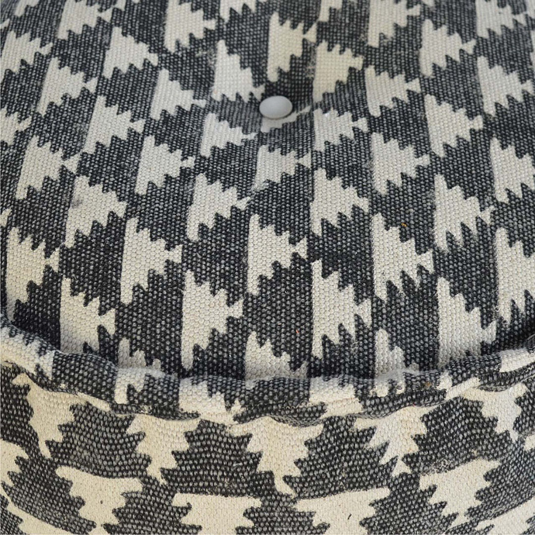 This Round Footstool, expertly crafted with 100% natural jute dhurie upholstery, offers both durability and eco-friendly appeal. Filled with reckron, it provides comfortable support while maintaining its shape. Its timeless design and natural texture make it a versatile accent piece, enhancing the aesthetic and functionality of any living space.
