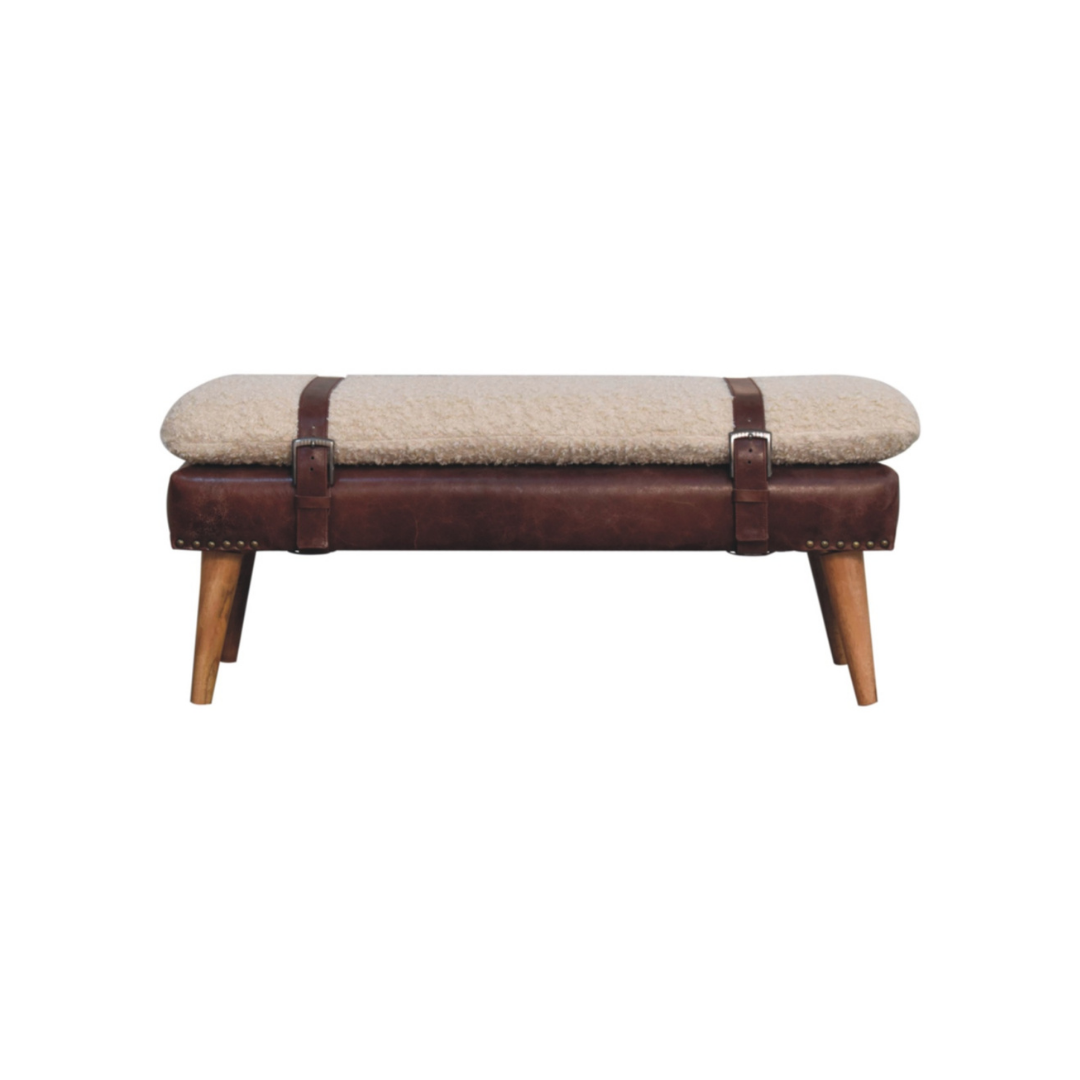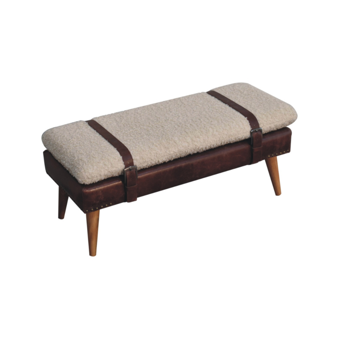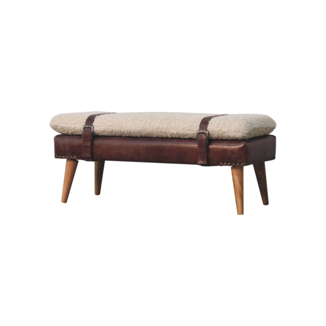 Boucle x Brown Leather Bench