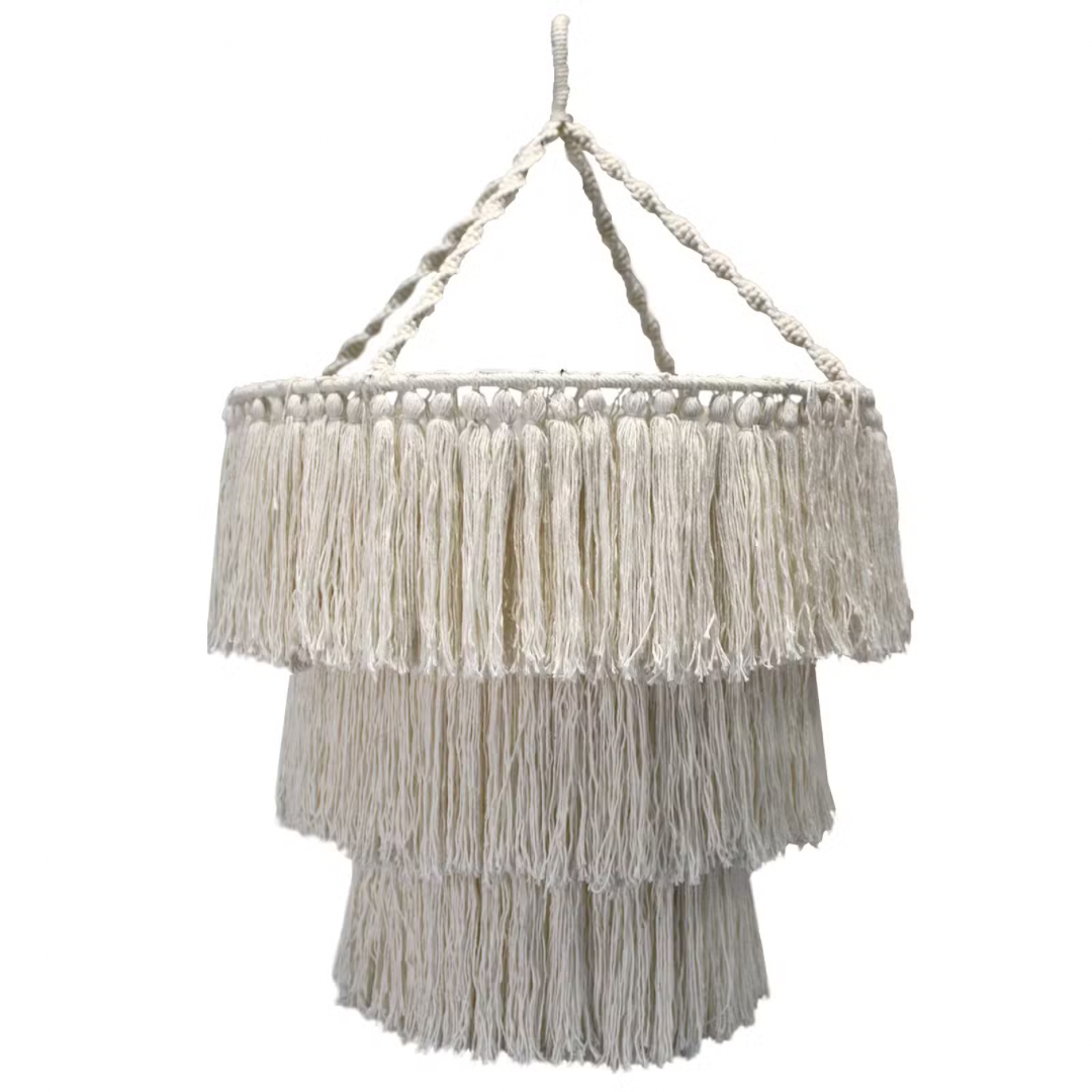 Expertly crafted with intricate macrame detailing, the Macrame Soft Chandelier in natural tones adds a touch of bohemian elegance to any space. Made from high-quality materials, it is both durable and stylish. Elevate your home decor with this unique and charming statement piece.