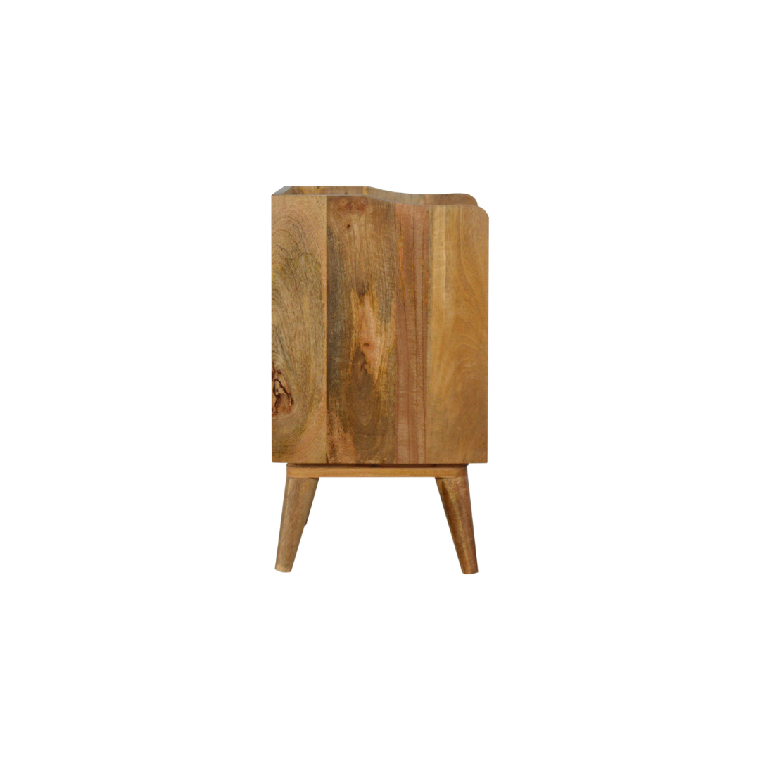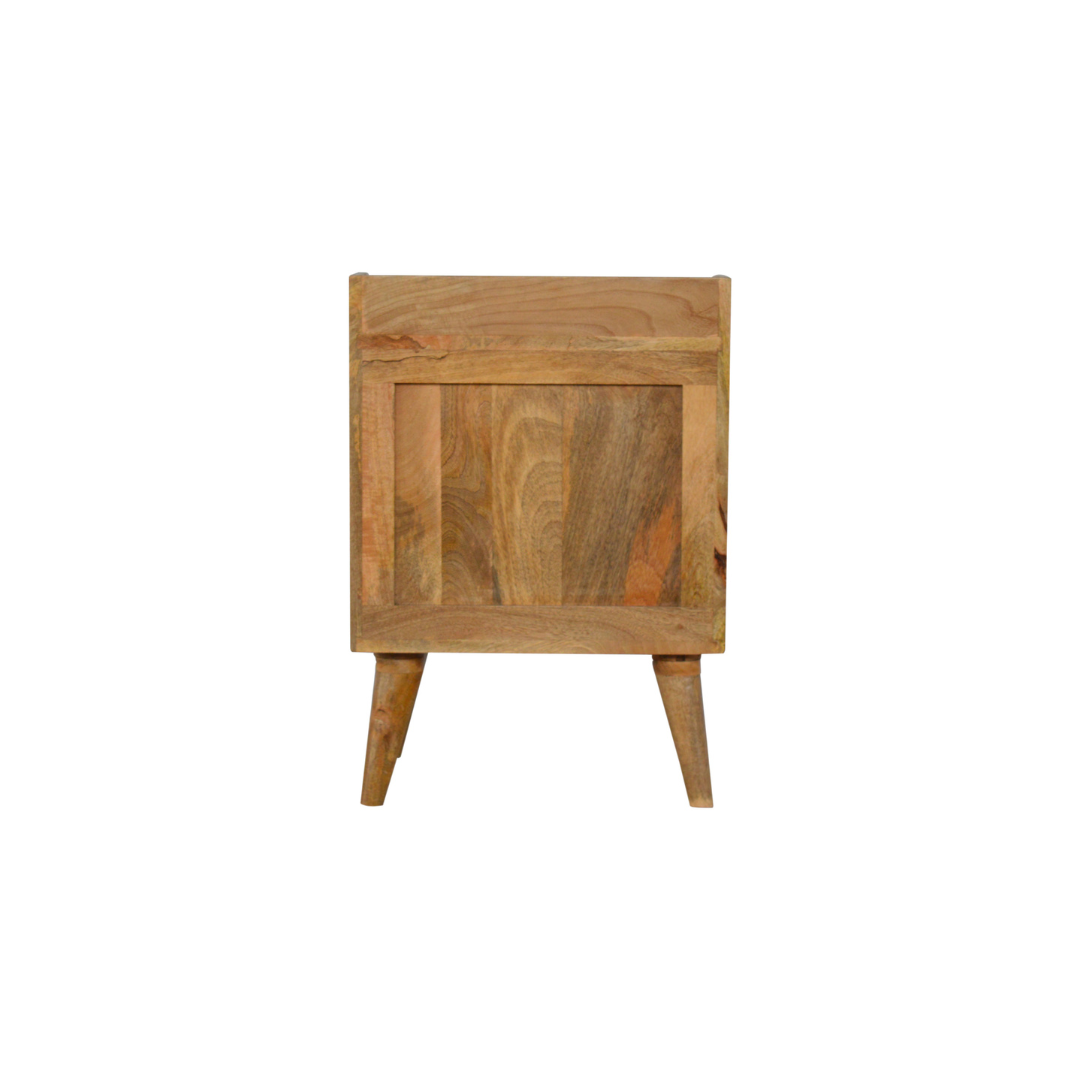This Navy and White Painted Bedside Table, crafted from 100% solid mango wood, features a sunbleach finish body complemented by three white hand-painted drawer fronts. Designed with Nordic simplicity, it provides ample space to hold a lamp, photo frame, or personal items, keeping essentials within easy reach. Its durable construction and refined finish make it a practical and stylish addition to any bedroom.