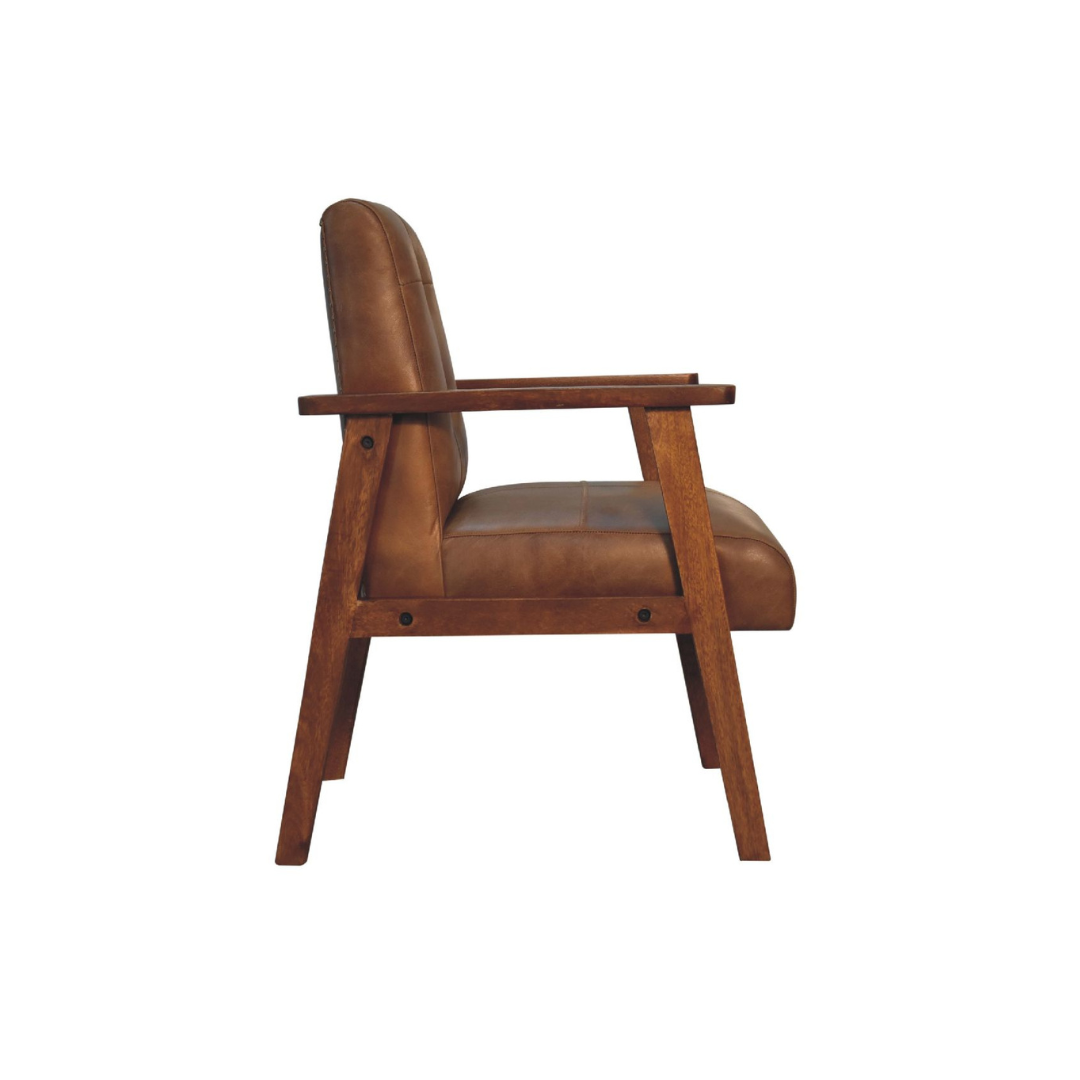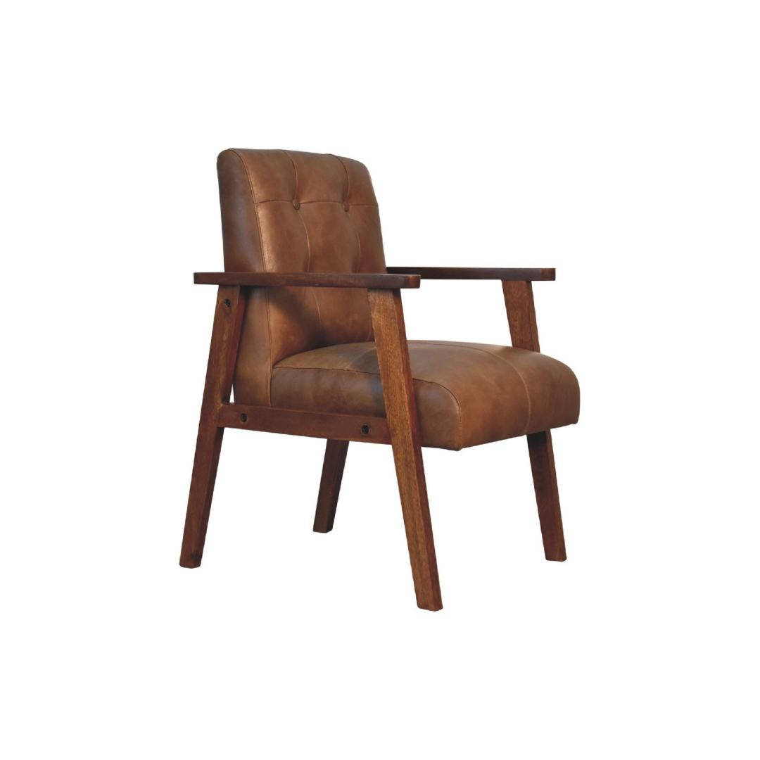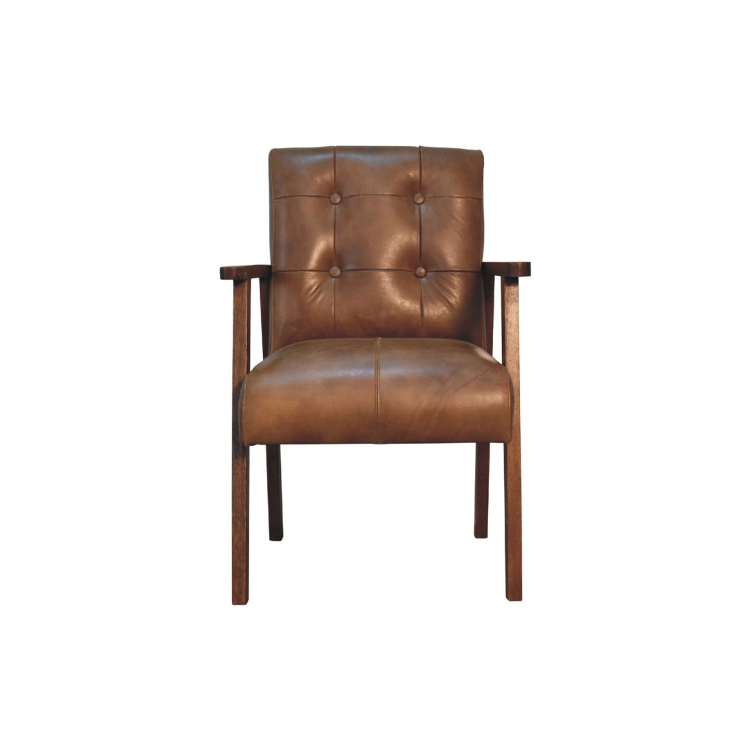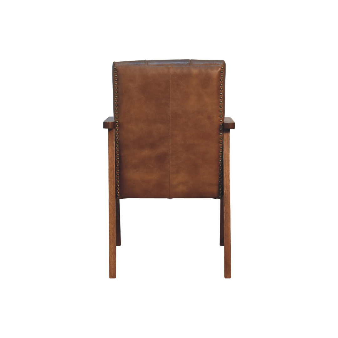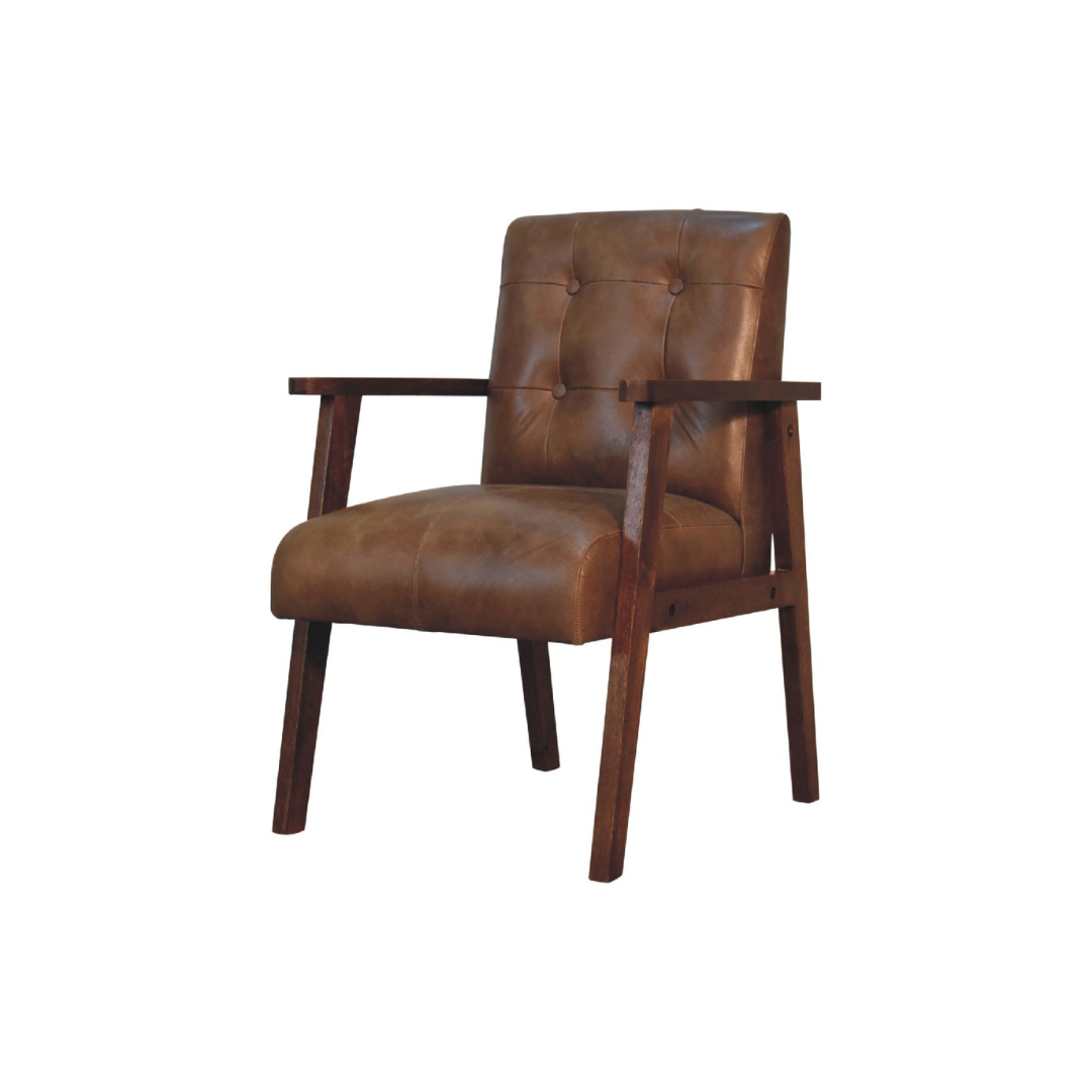 This Brown Buffalo Leather Chair combines expert craftsmanship with timeless design. Upholstered in premium buffalo hide leather, its rich olive green hue enhances any living or dining space with understated elegance. The chair features a plush seat and a deep button-back cushion, offering exceptional comfort and support.