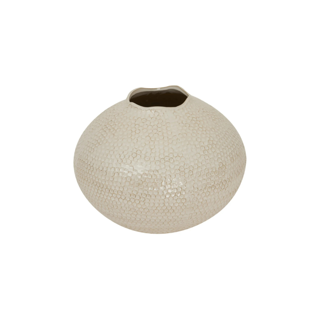 Discover the stunning visual impact of the Zaffera Caldron Vase. With its modern design and unique mottled finish, this vase is perfect for adding a touch of style and elegance to any space. Display it alone or grouped with other pieces for a truly eye-catching statement.