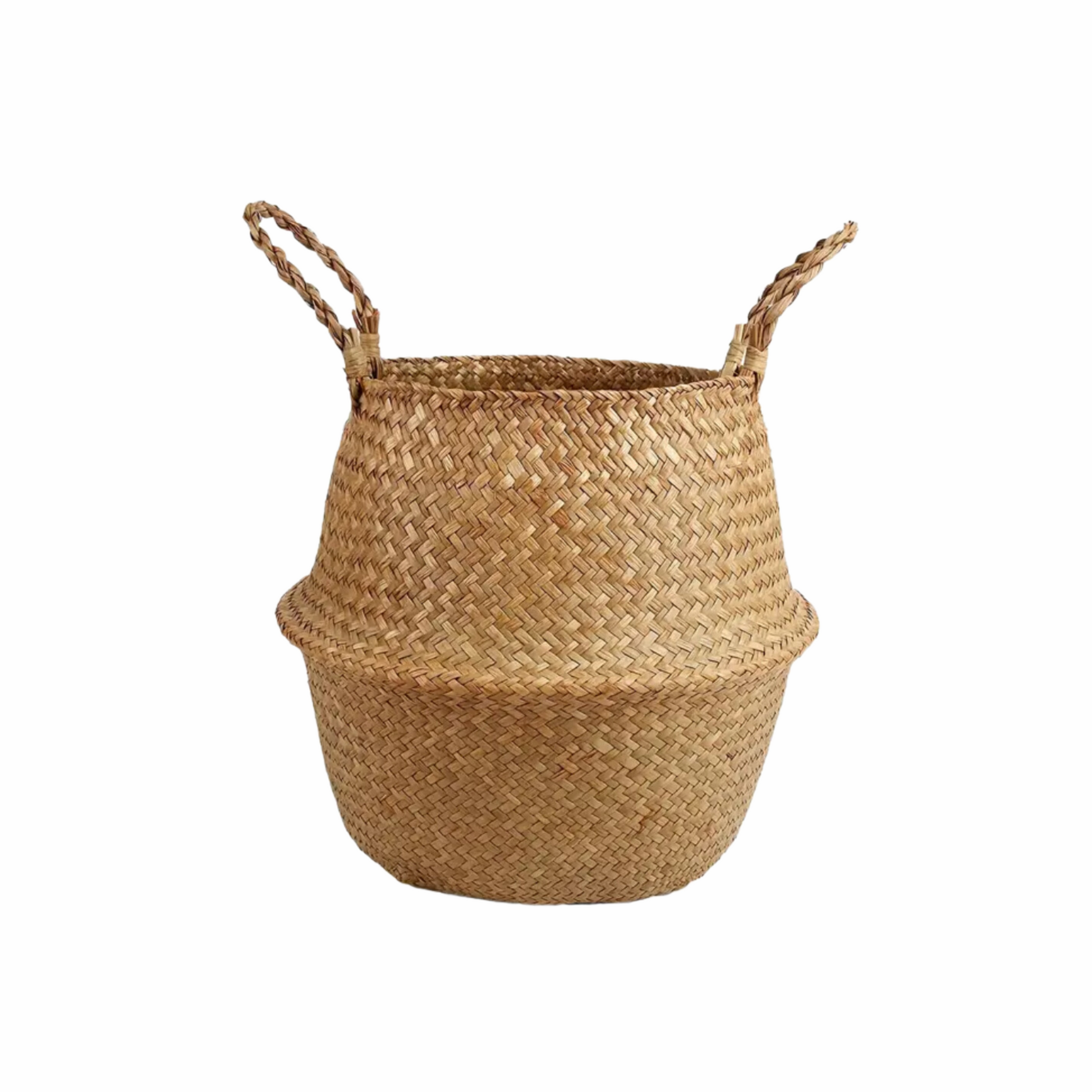 Enhance your home decor with our Woven Seagrass Belly Basket. Made from natural seagrass, this basket features a unique woven design and convenient handles for easy transport. Perfect for organising and storing household items, while adding a touch of rustic charm to any room.